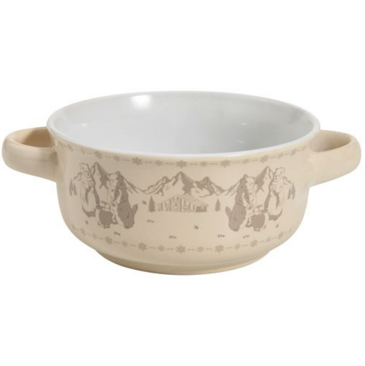 Apportez une touche de chaleur montagnarde à votre table avec ce bol crème décoré de marmottes. Idéal pour les soupes généreuses d’hiver, il séduit par son style ""esprit montagne"" et son grand confort d’utilisation grâce à ses deux larges anses.