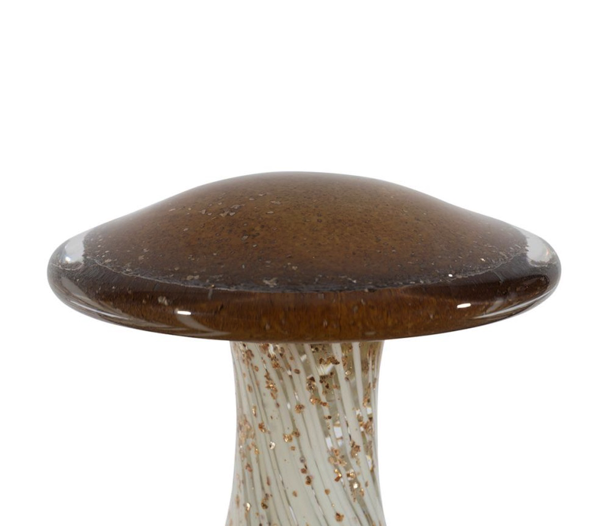 Ajoutez une note originale et élégante à votre décoration avec le champignon Bolet en verre ambre et doré. Sa silhouette délicate et ses reflets lumineux en font un objet raffiné qui attire le regard.
