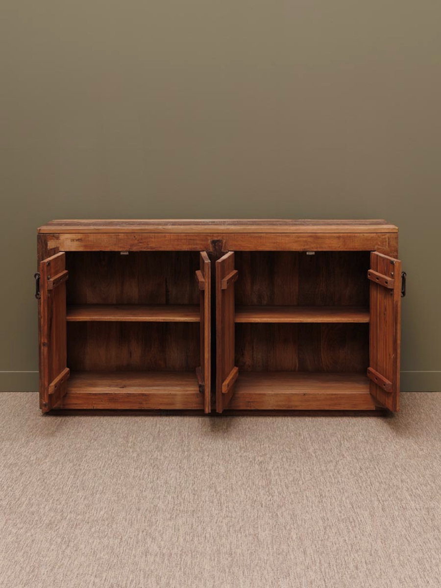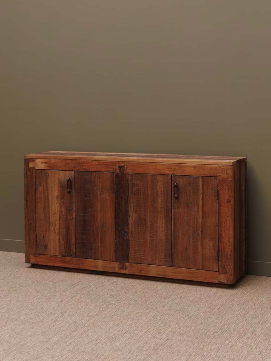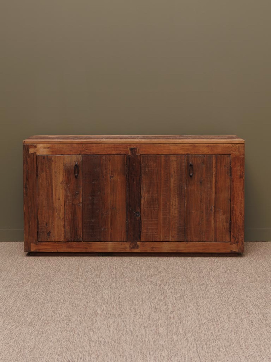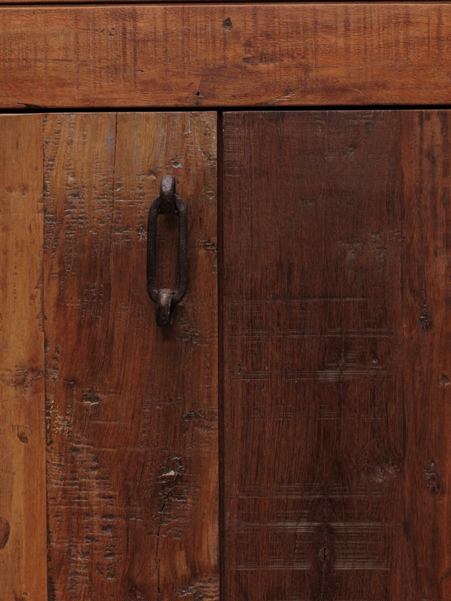 Ce buffet incarne l'art du mobilier en bois recyclé, où chaque pièce raconte une histoire unique. Les caractéristiques distinctives du bois recyclé, telles que les marques d'usure, les nœuds et les variations de couleur, ajoutent une authenticité remarquable à ce meuble d'exception.