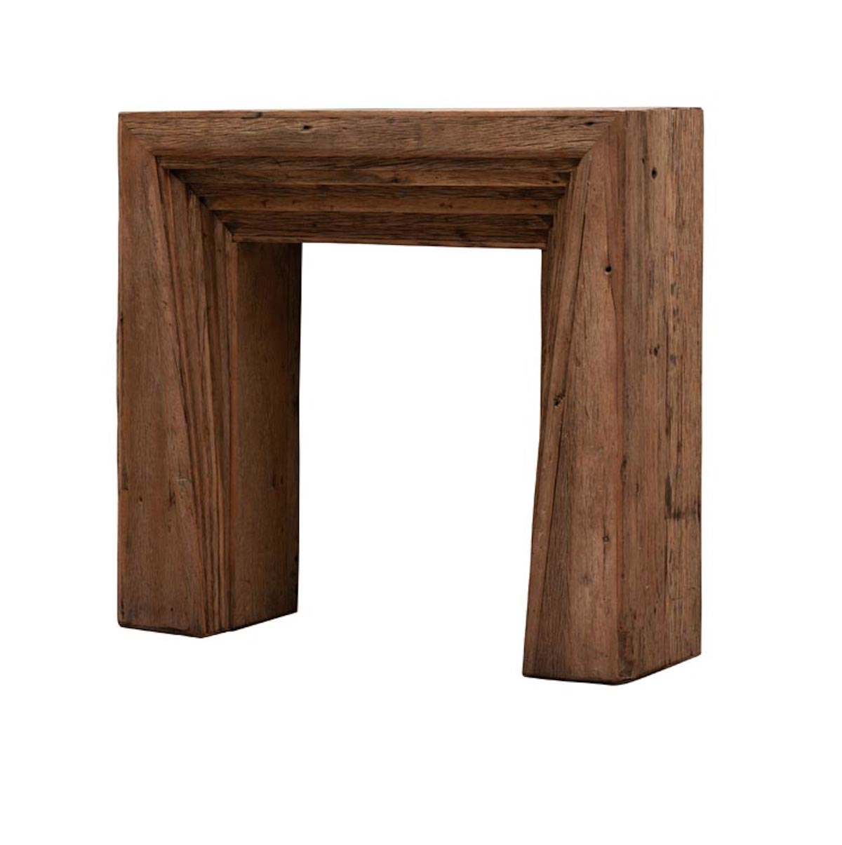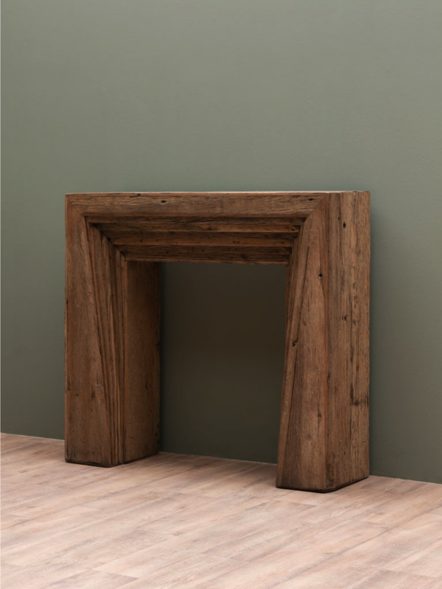 Inspirée des encadrements de cheminées anciennes, cette console murale en bois recyclé apporte instantanément du caractère et une dimension architecturale à votre intérieur. Son design massif et authentique évoque le charme des demeures d'autrefois tout en s'inscrivant parfaitement dans les tendances contemporaines.