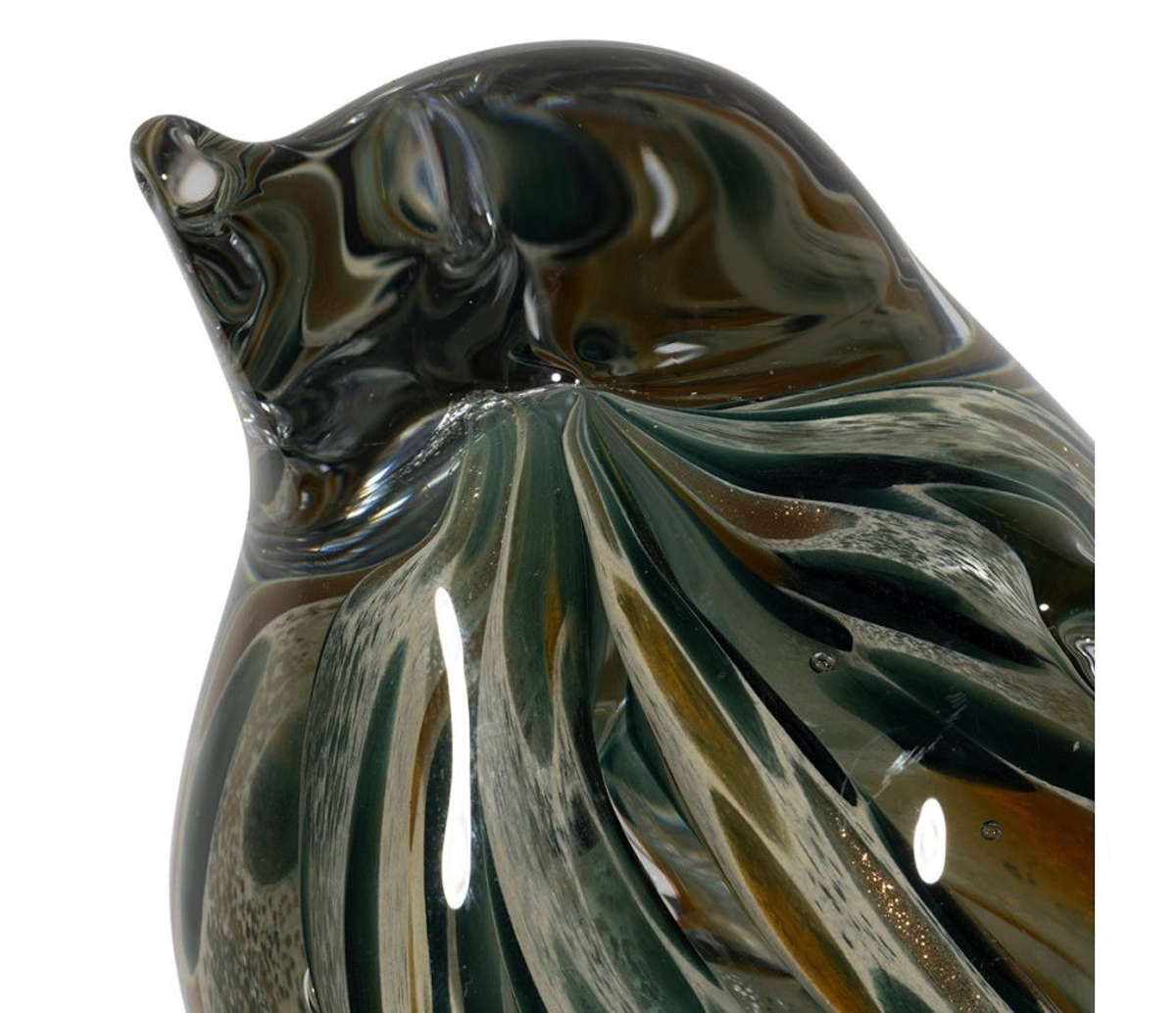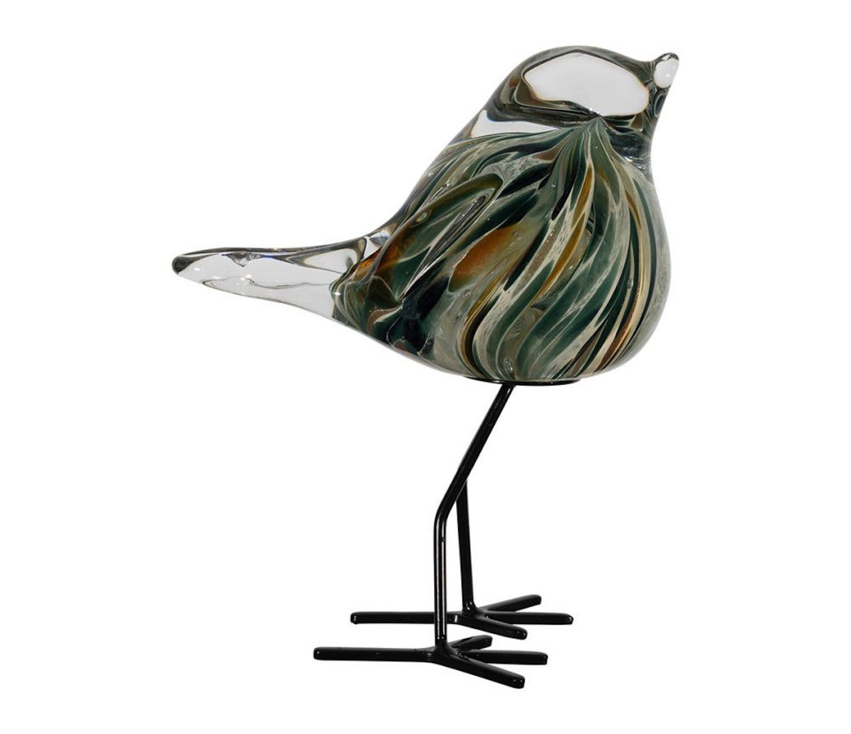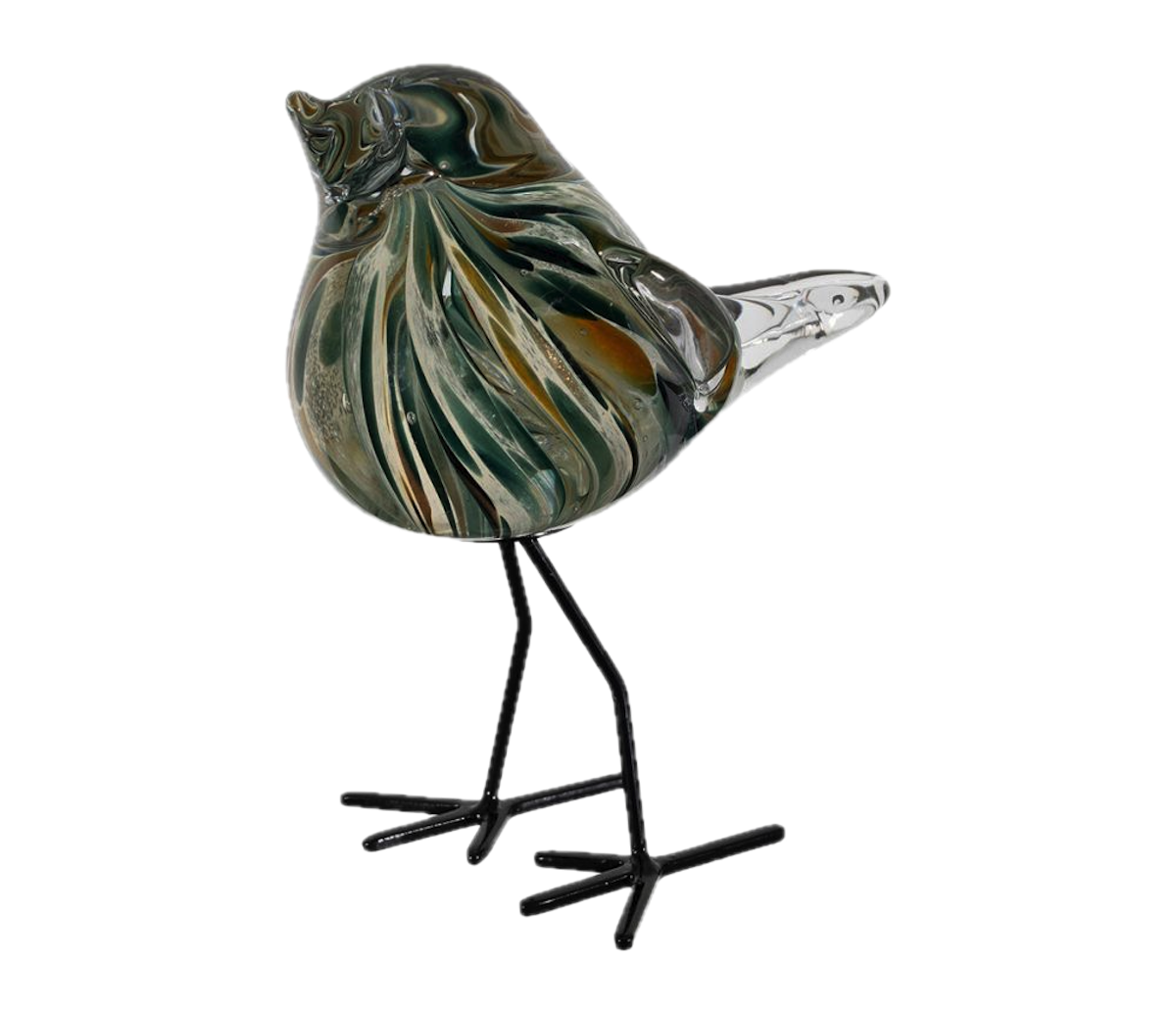 Apportez une touche raffinée et lumineuse à votre décoration avec le moineau Serin émeraude et doré. Réalisé en verre et fer, ce petit oiseau décoratif se distingue par son éclat élégant et ses reflets sophistiqués.