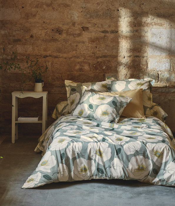 Des fleurs généreuses et étonnantes déploient avec douceur leurs pétales délicats et vaporeux. À la fois bohème, élégant et intemporel, ce linge de lit installera une belle harmonie au sein de votre chambre.