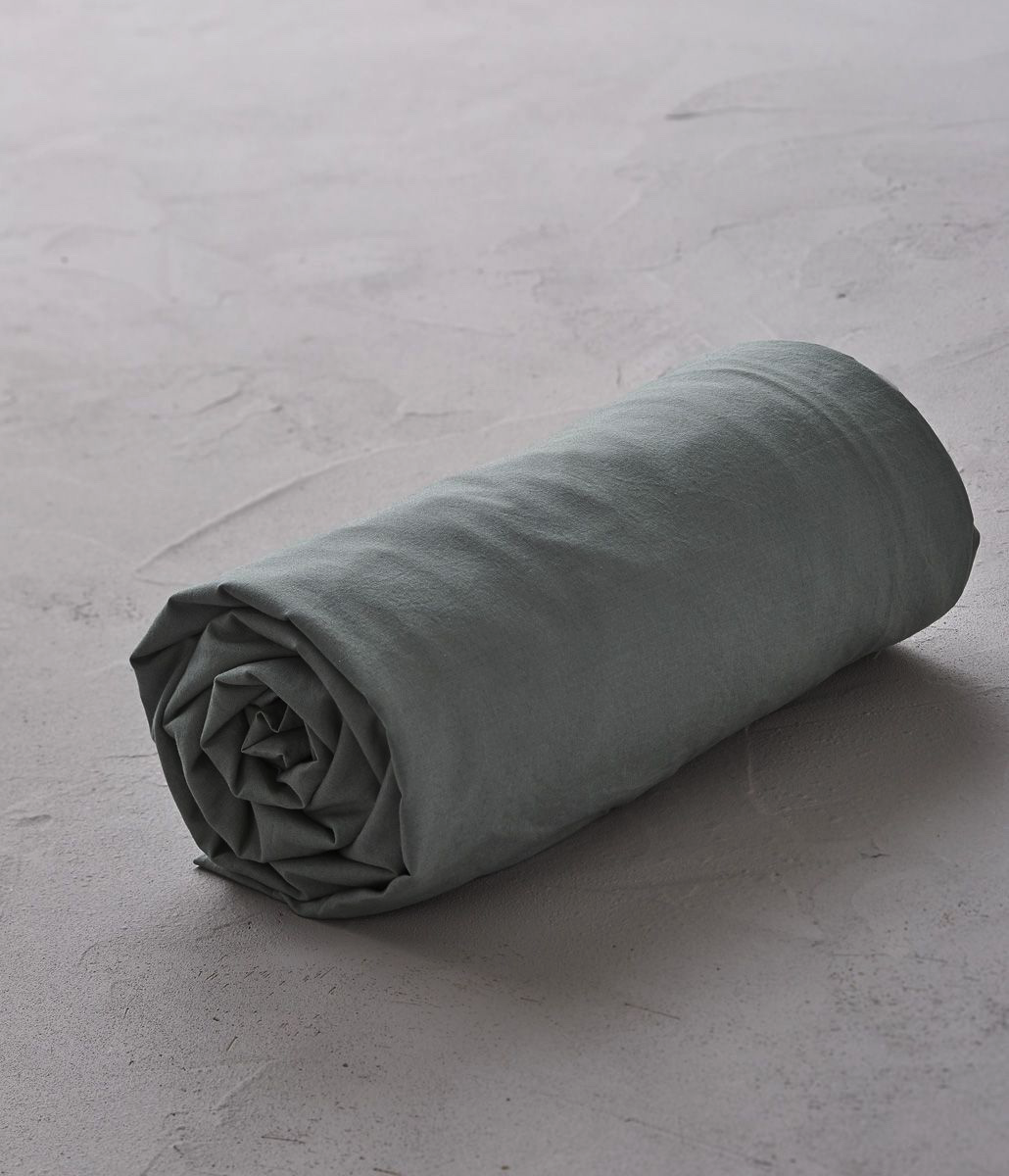 Drap housse percale lavée Vert sauge - Sylvie Thiriez