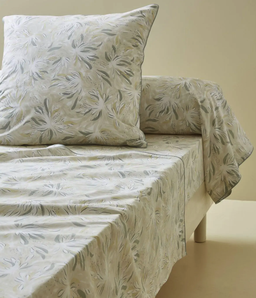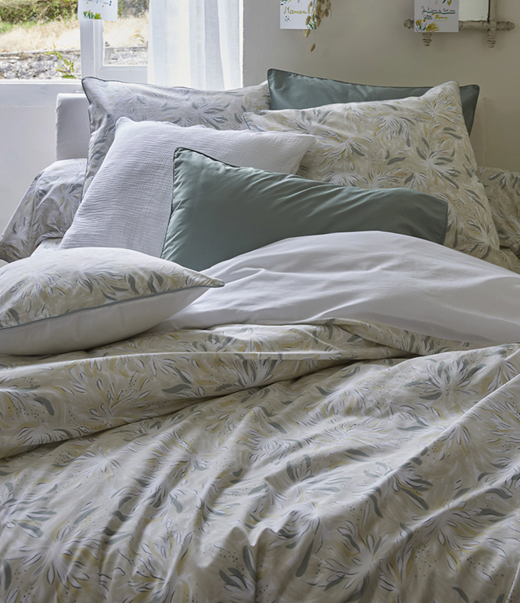 Cette parure de lit imprimée en percale de coton, vous plonge dans un monde onirique avec son dessin doux et délicat.