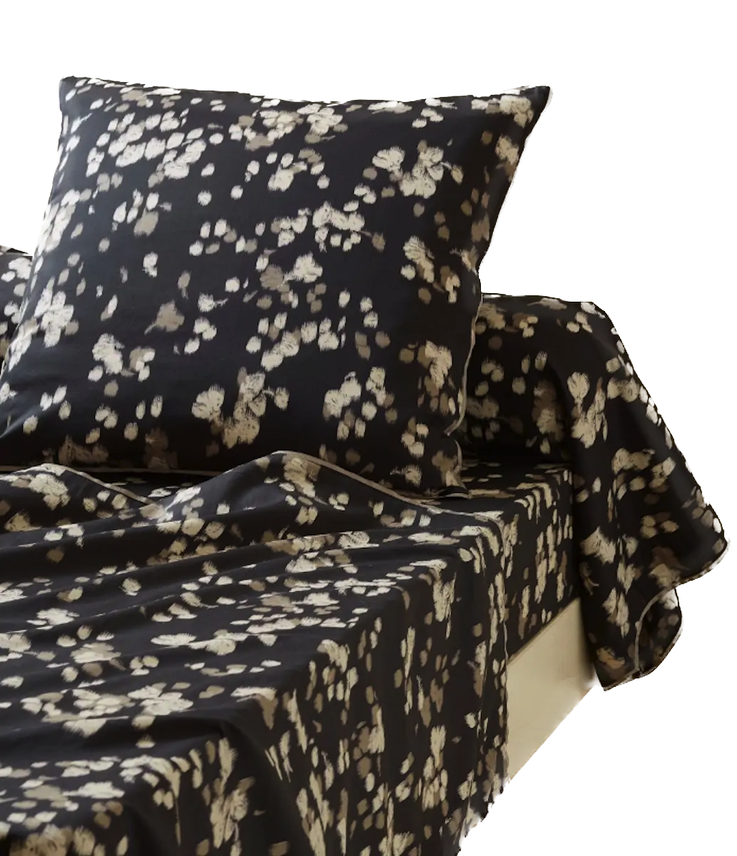 Cette taie d'oreiller modernise le motif floral grâce à un effet estompé qui le transforme en un dessin proche de l’abstraction et libre d’interprétation.