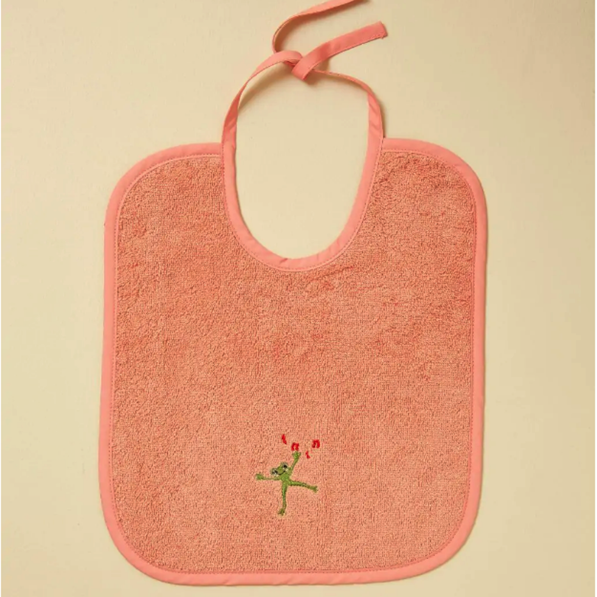 Disponible en un doux coloris rose, chaque pièce est ornée d'une broderie délicate de grenouilles, apportant une touche ludique et poétique à la parure.