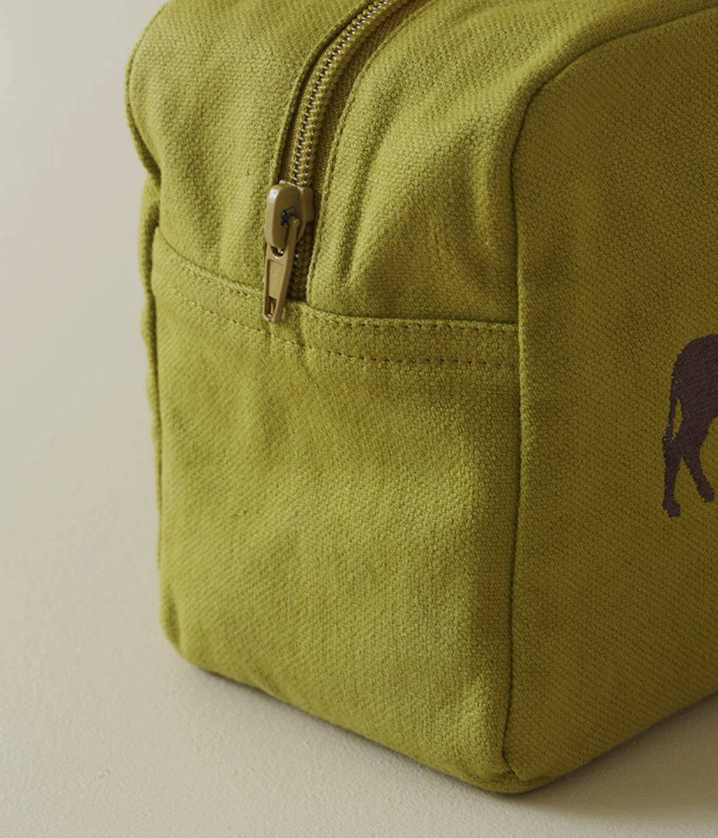 Apportez une touche de nature et de douceur à votre salle de bain avec cette trousse de toilette vert olive.