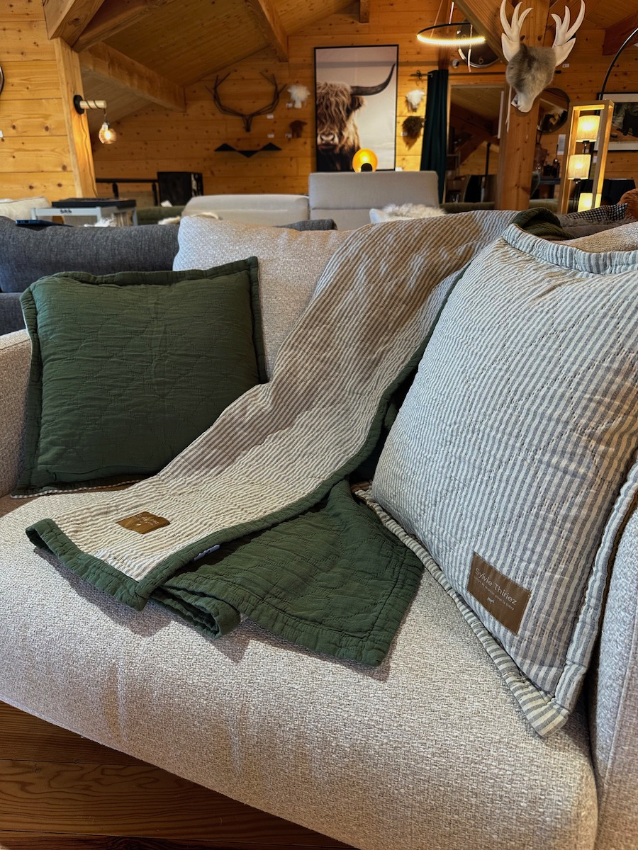Jeté de lit Double Jeu Vert Kaki - Sylvie Thiriez