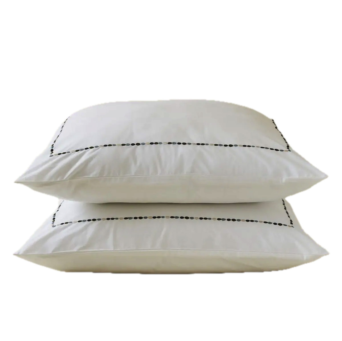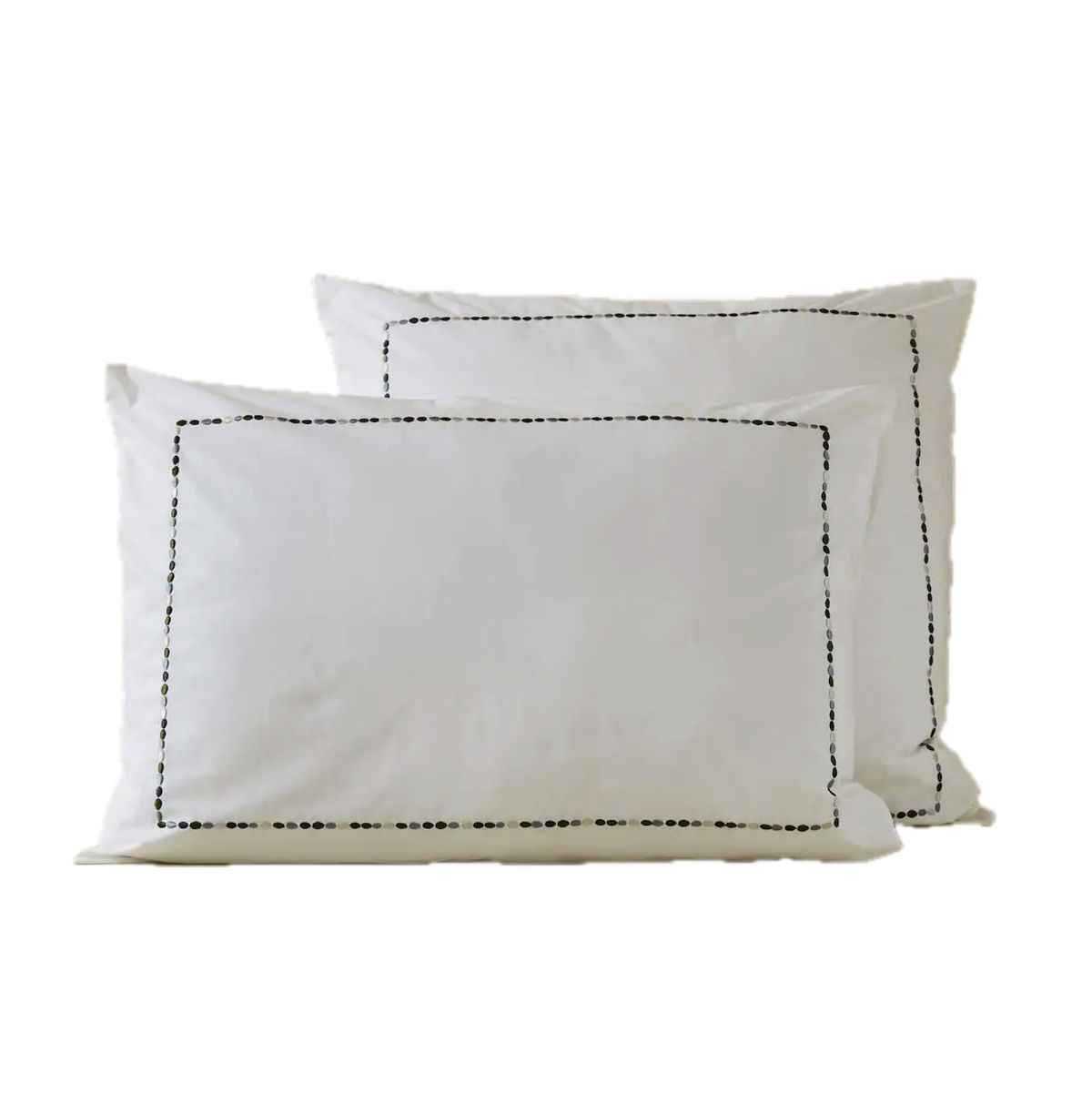 Sur les taies en percale de coton, les lignes de pois entourent les taies et déclinent des camaïeux de couleurs actuelles et facile à assortir.