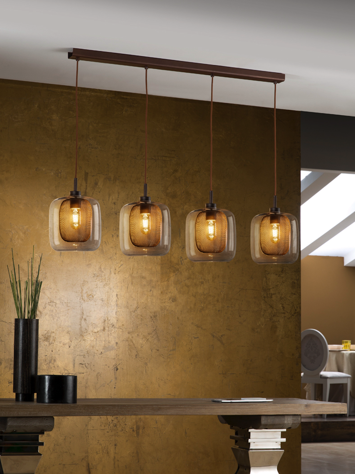 La suspension Fox 4-Light de Schuller est un luminaire élégant et contemporain qui apportera une touche de modernité à votre intérieur. Sa structure en métal finition chocolat et ses quatre diffuseurs en verre ambré créent une ambiance chaleureuse et accueillante. Cette suspension est idéale pour éclairer une salle à manger, un salon ou un espace de vie avec style.