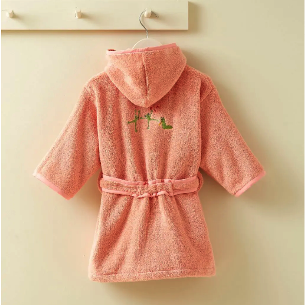 Disponible en un doux coloris rose, chaque pièce est ornée d'une broderie délicate de grenouilles, apportant une touche ludique et poétique à la parure.
