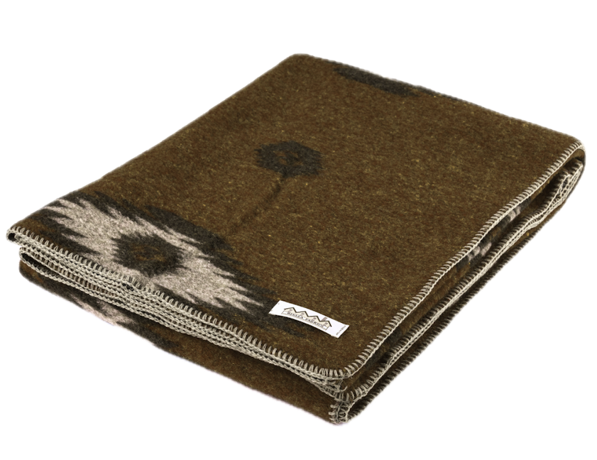 Plaid en laine marron - Ligne indienne & Dimant marron/blanc - 145x200