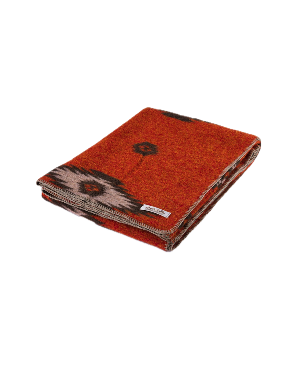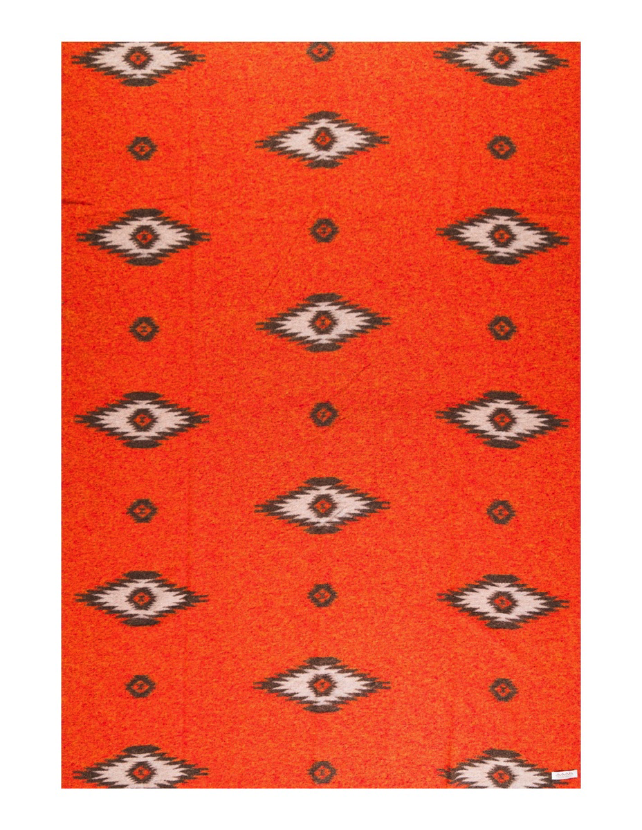Plaid en laine orange - Ligne indienne & Losanges naturel/orange - 145x200