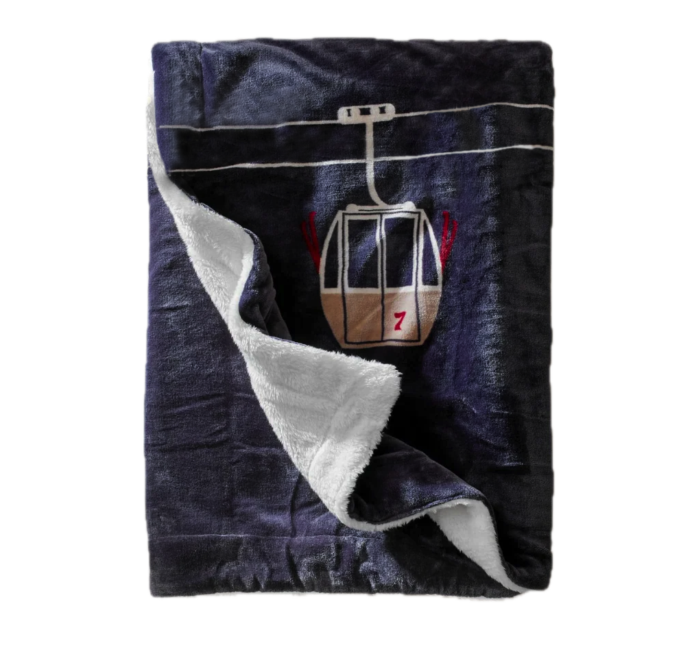 Le Plaid Télécabine, avec son motif original et sa double épaisseur de polaire, est un cocon de douceur dans lequel on s'enveloppe volontiers pour tromper l'hiver.