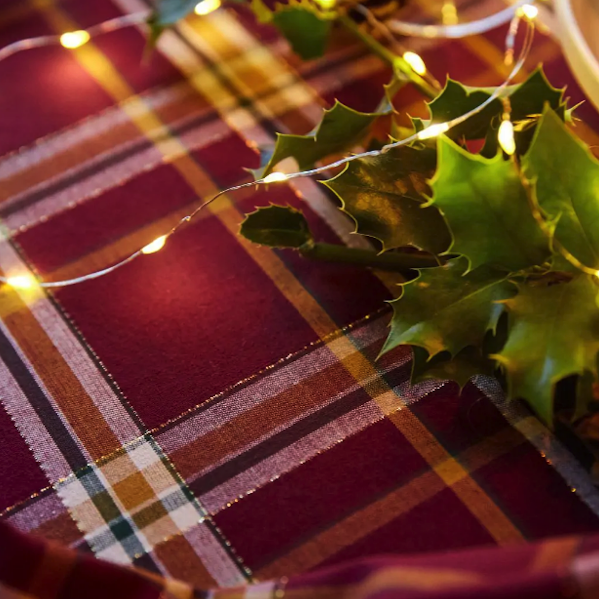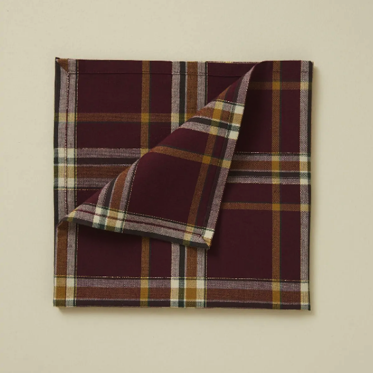 Apportez une touche de chaleur et de tradition à votre table de Noël avec la serviette Forêt Enchantée Carreaux de Sylvie Thiriez. Son motif tartan aux teintes profondes de bordeaux, rehaussé de lignes dorées, beiges et blanches, évoque l'atmosphère cosy des chalets de montagne et des soirées au coin du feu. Cette création textile incarne l'esprit des fêtes de fin d'année avec raffinement et authenticité.