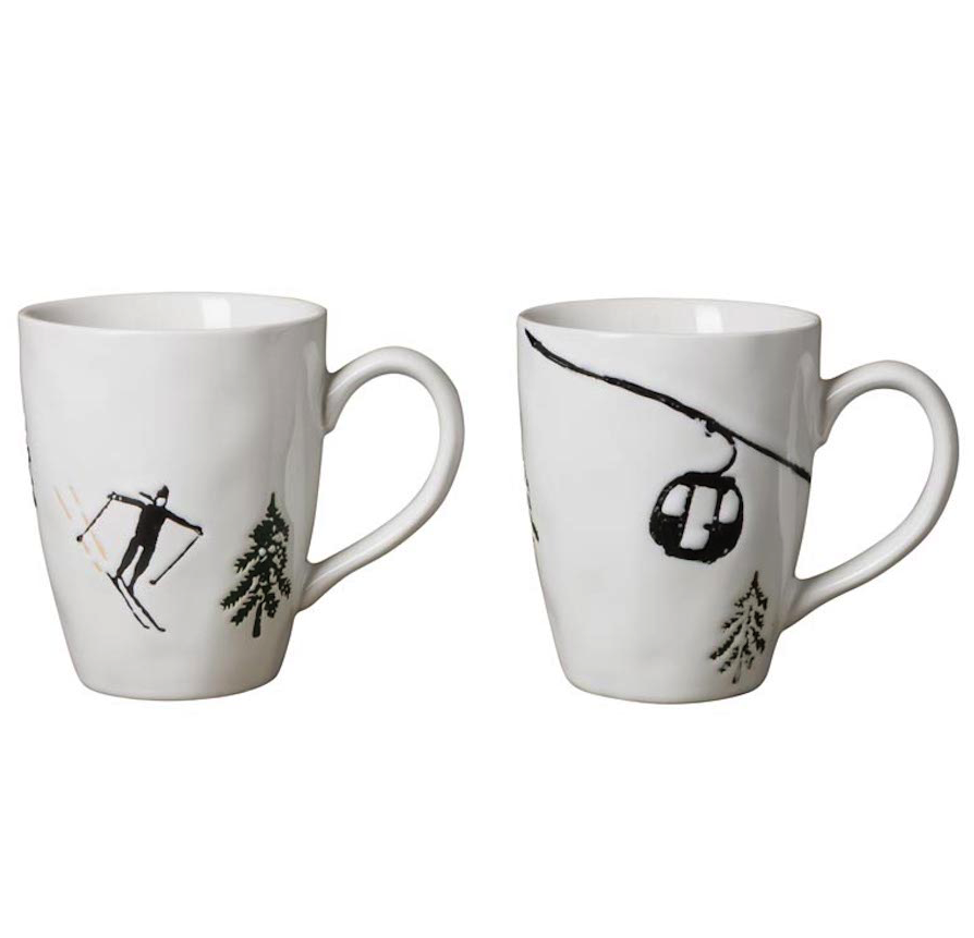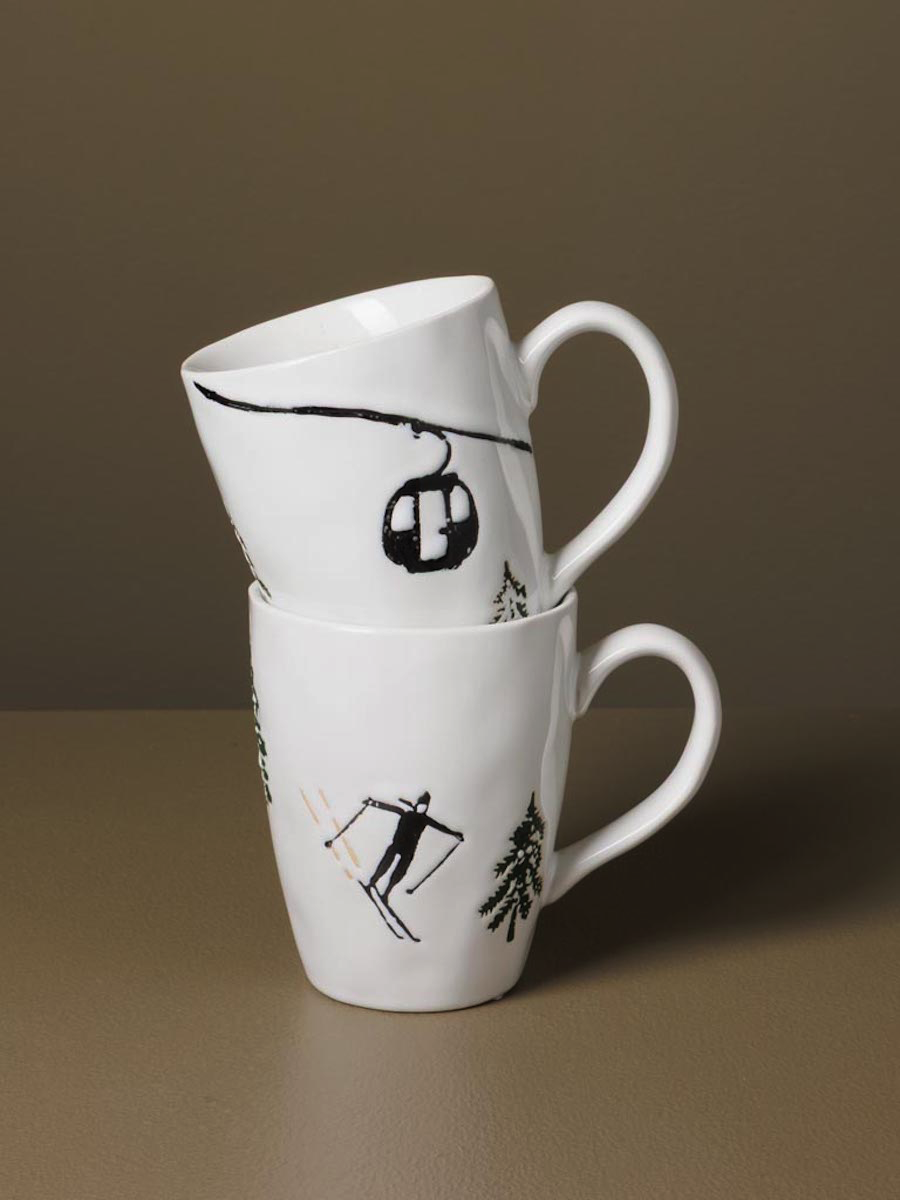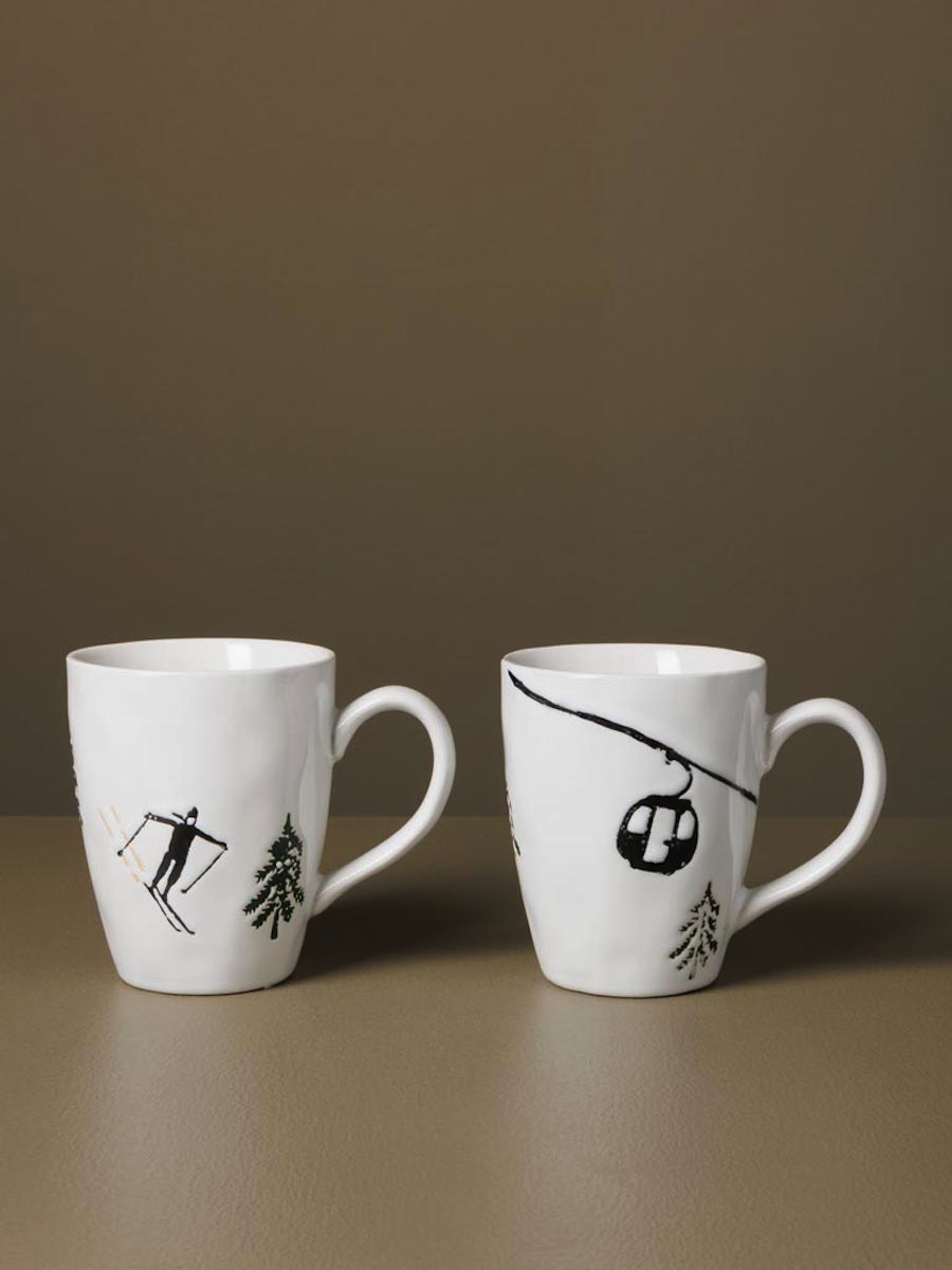 Savourez vos boissons chaudes dans ce set de deux mugs en grès qui célèbre la passion des sports d'hiver.