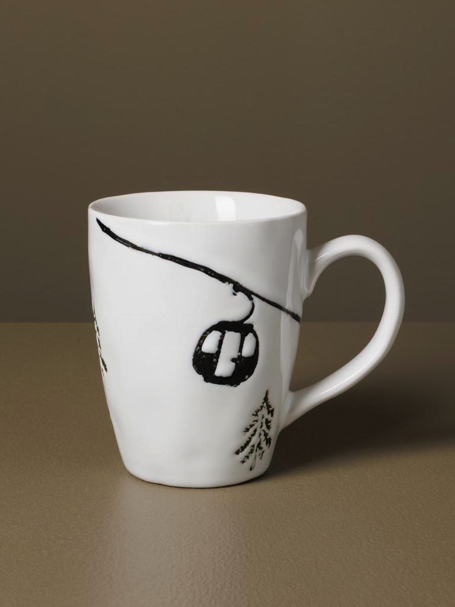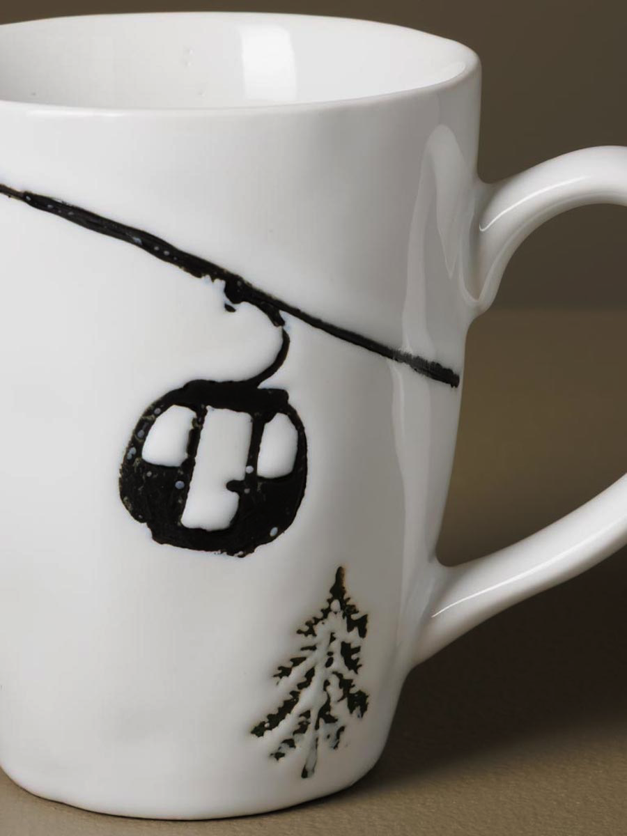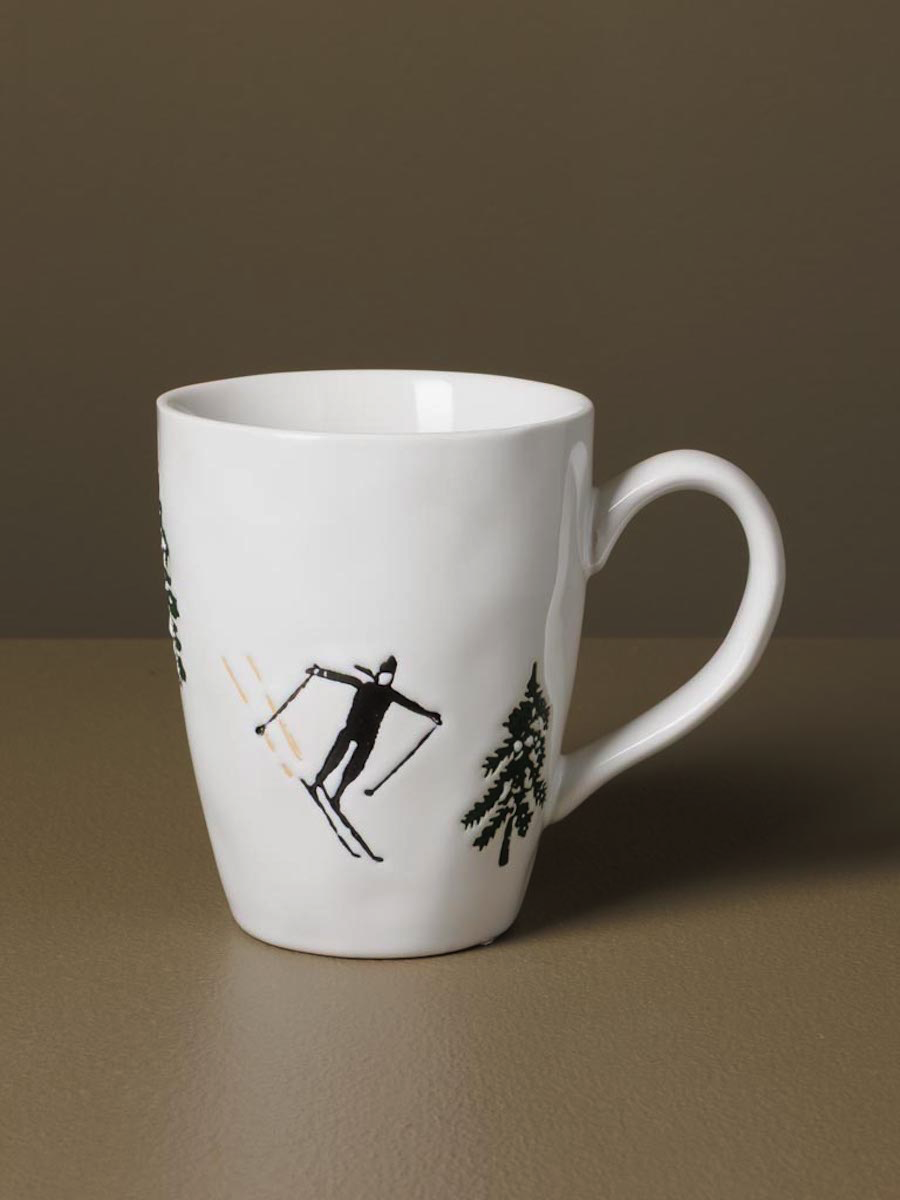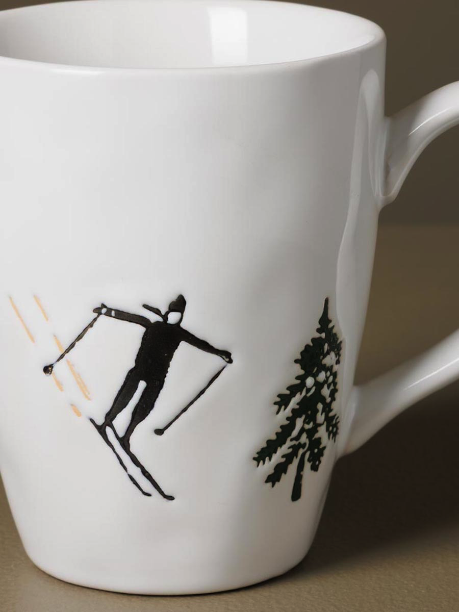 Ornés de motifs en relief représentant des skieurs en pleine descente évoluant parmi les sapins enneigés, ces mugs apportent une touche dynamique et authentique à vos pauses.