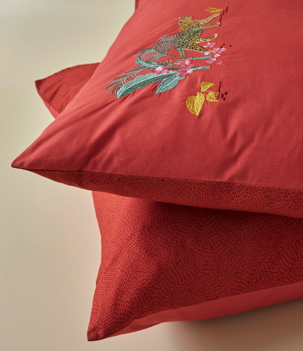 Taie d'oreiller brodée Bornéo - Sylvie Thiriez