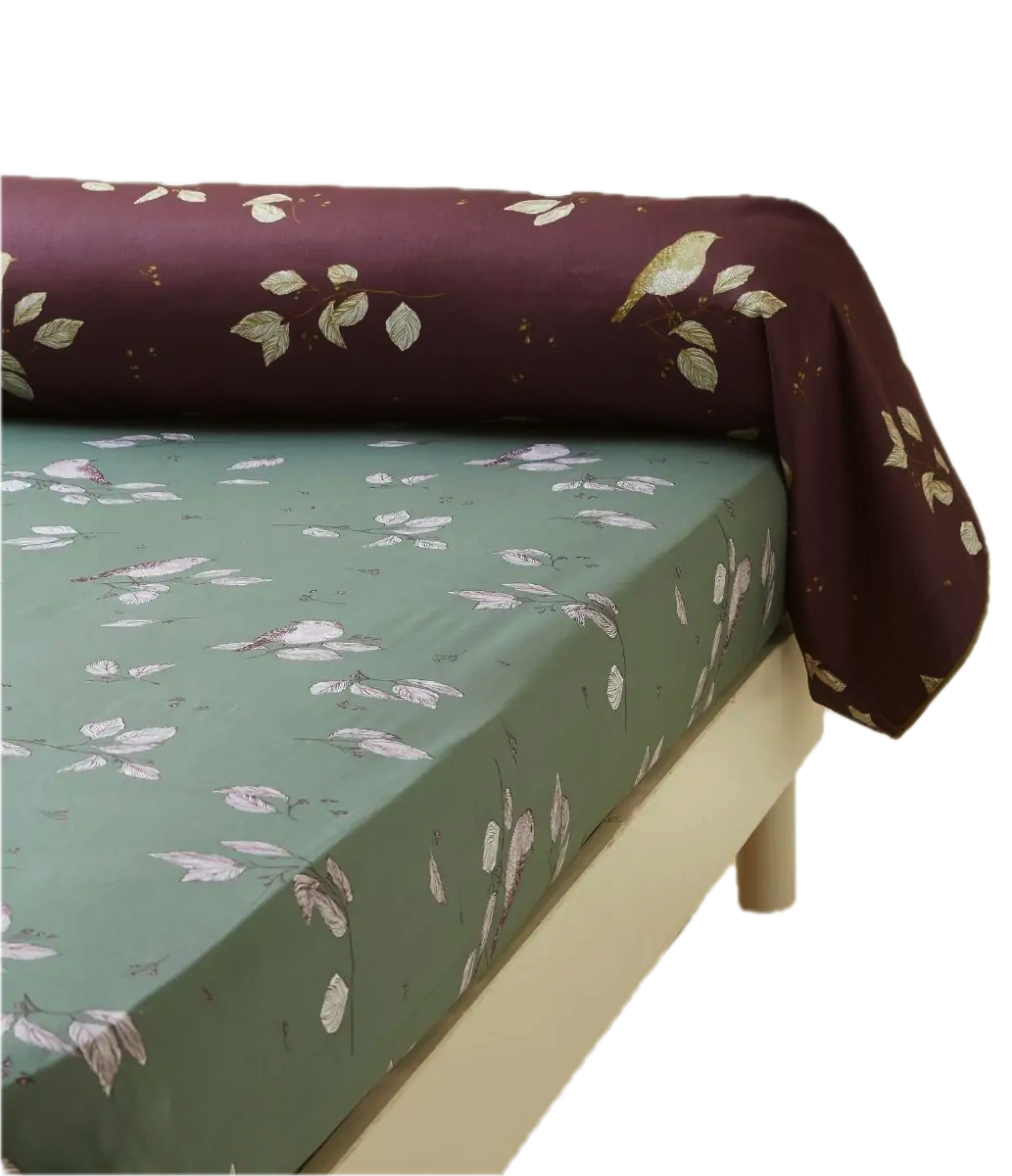 Un vert fumé côtoie un aubergine et un vert mousse pétillant pour créer une atmosphère cosy et accueillante dans votre chambre.