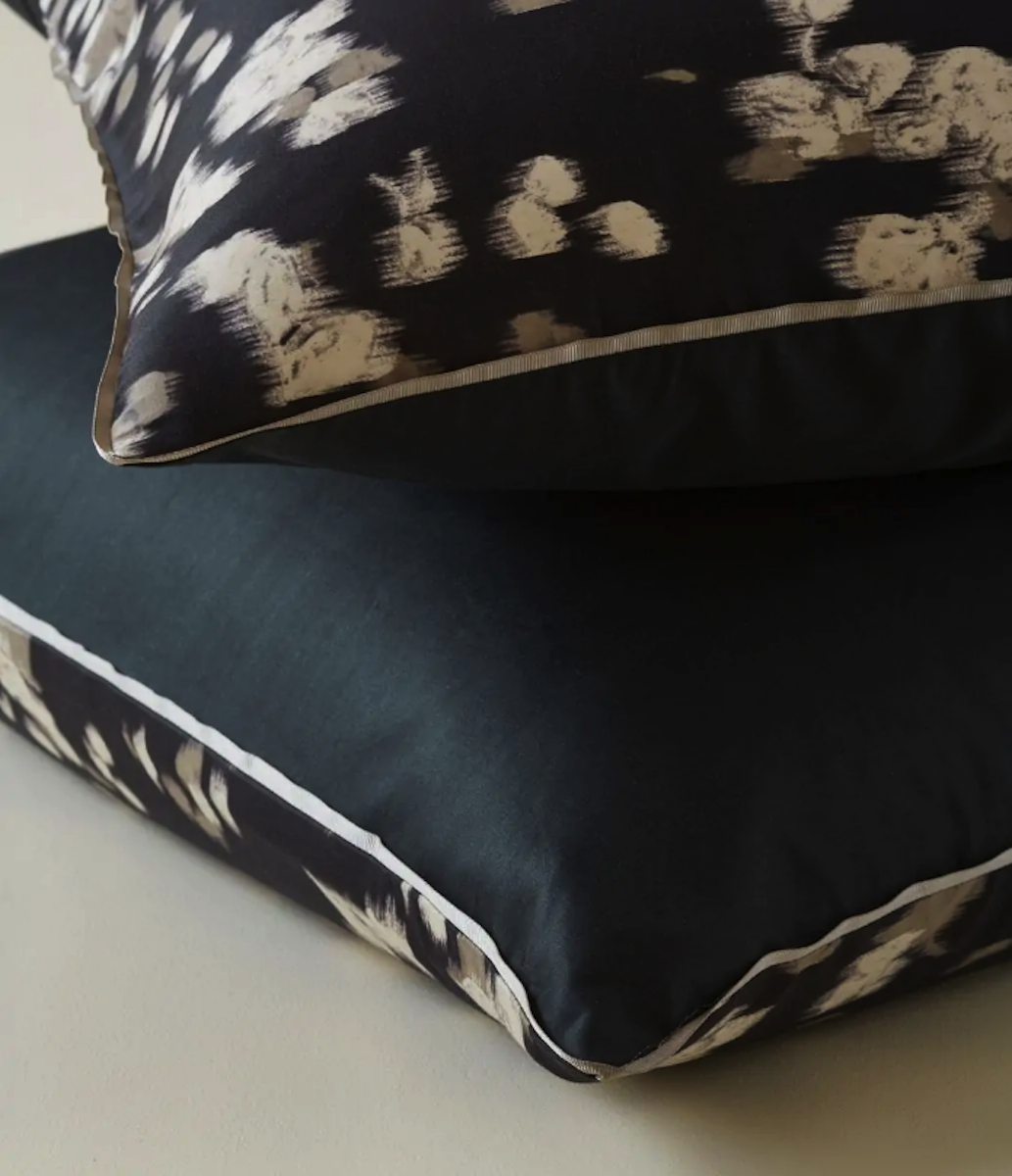 Cette taie d'oreiller modernise le motif floral grâce à un effet estompé qui le transforme en un dessin proche de l’abstraction et libre d’interprétation.